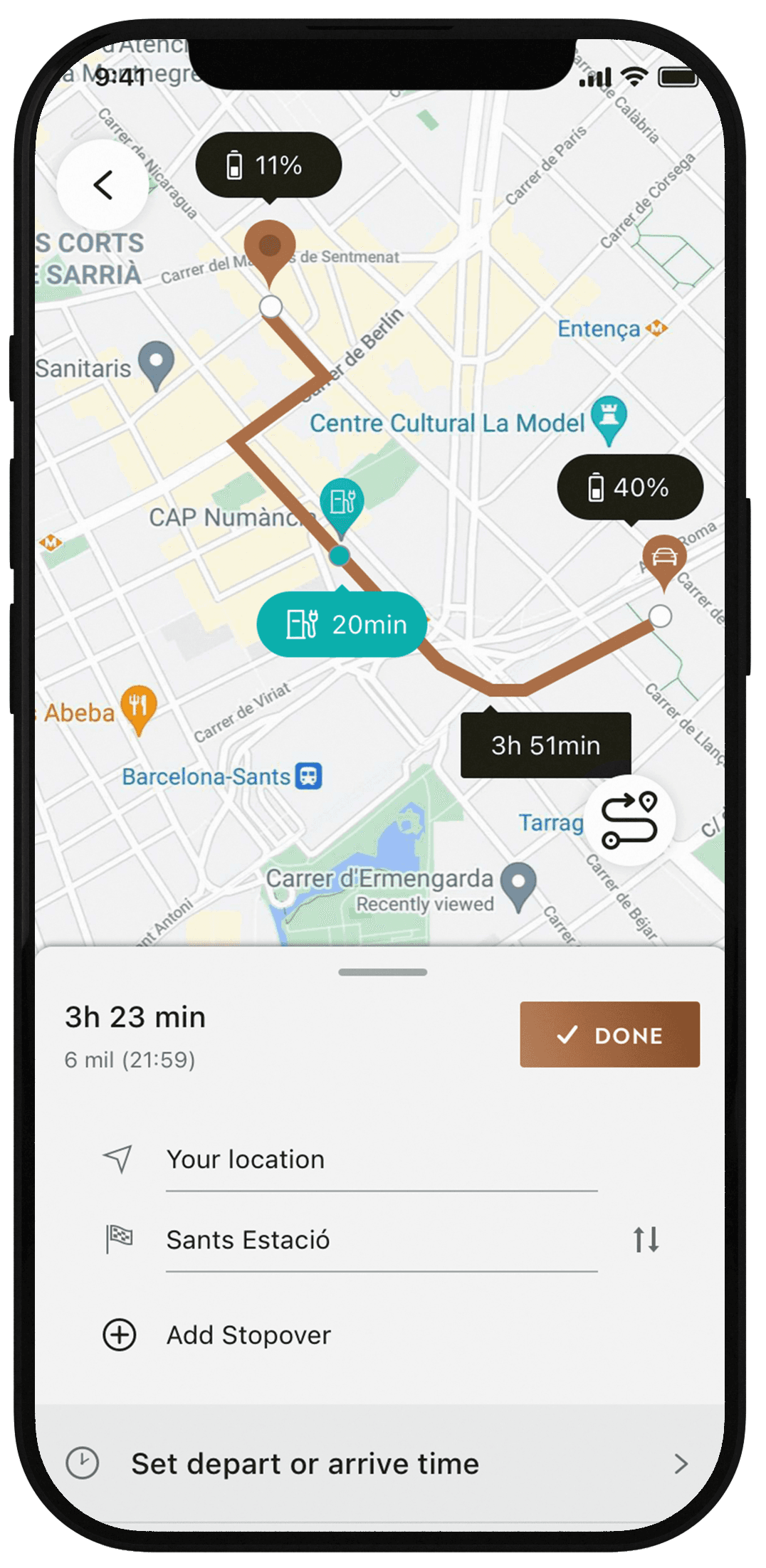 Full route plan with all charging details upfront