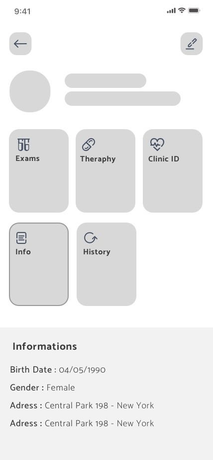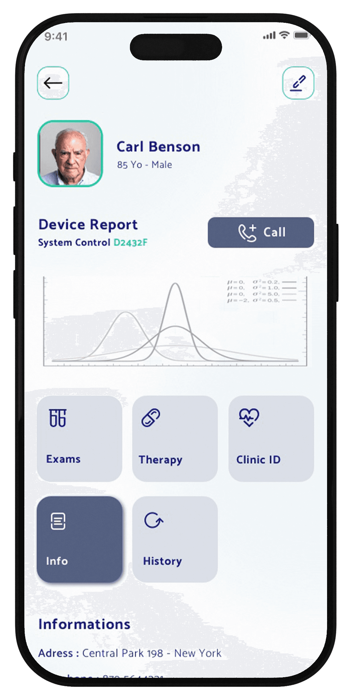 Patient Card provide essential medical info as Exams, Theraphy, Clinic ID and chronology.
