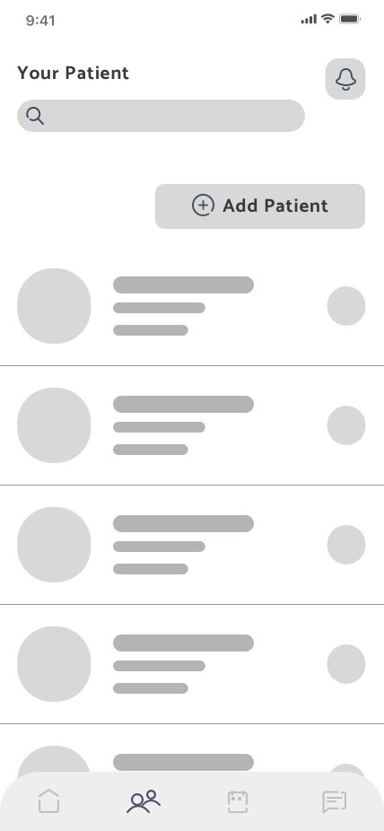 The Your Patients screen is the list of all the doctor's patients .The interface was think to be more clear as possible : a simple list with a search and filter on top.